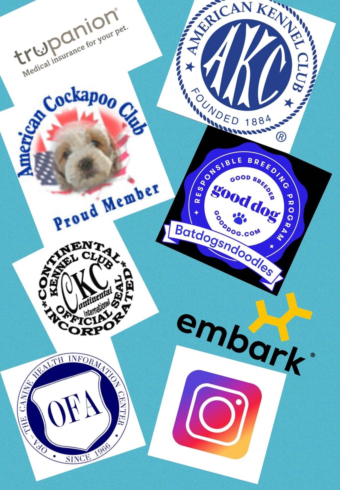 Proud member of Trupanian Pet insurance , American Cockapoo Club, Continental kennel club,